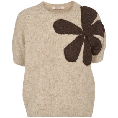 smuk strikbluse med fin blomster detalje